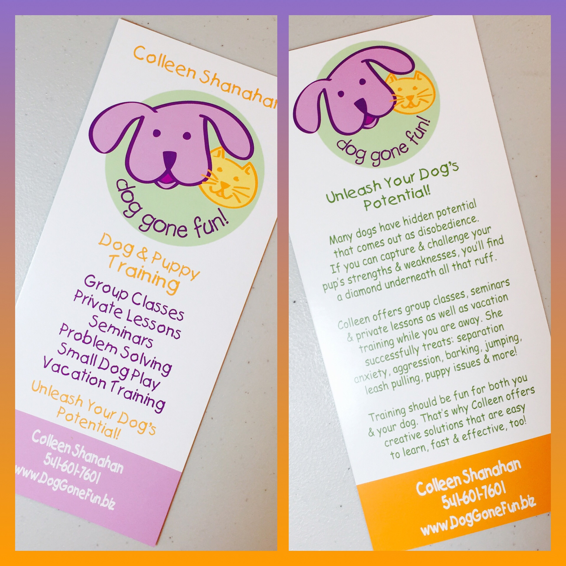 A fun graphic design project for Dog Gone Fun! dog training of Ashland, Oregon.